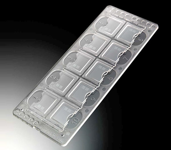 Sealed in a moisture absorbing desiccant pack which can function as a drying stand and a storage box. Slides are 1 mm thick.